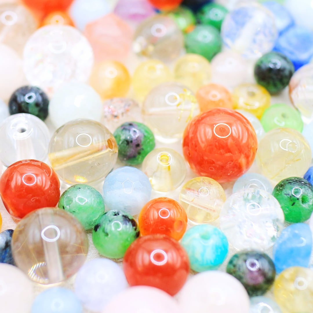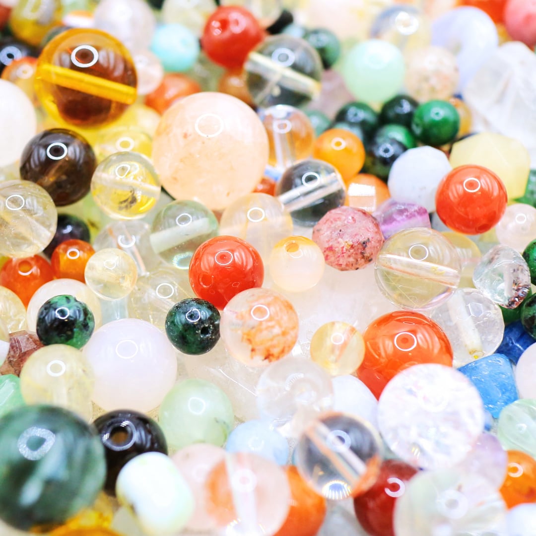 基本丸玉ですが、コロンっとしたボタンビーズやタンブル型も含まれております。