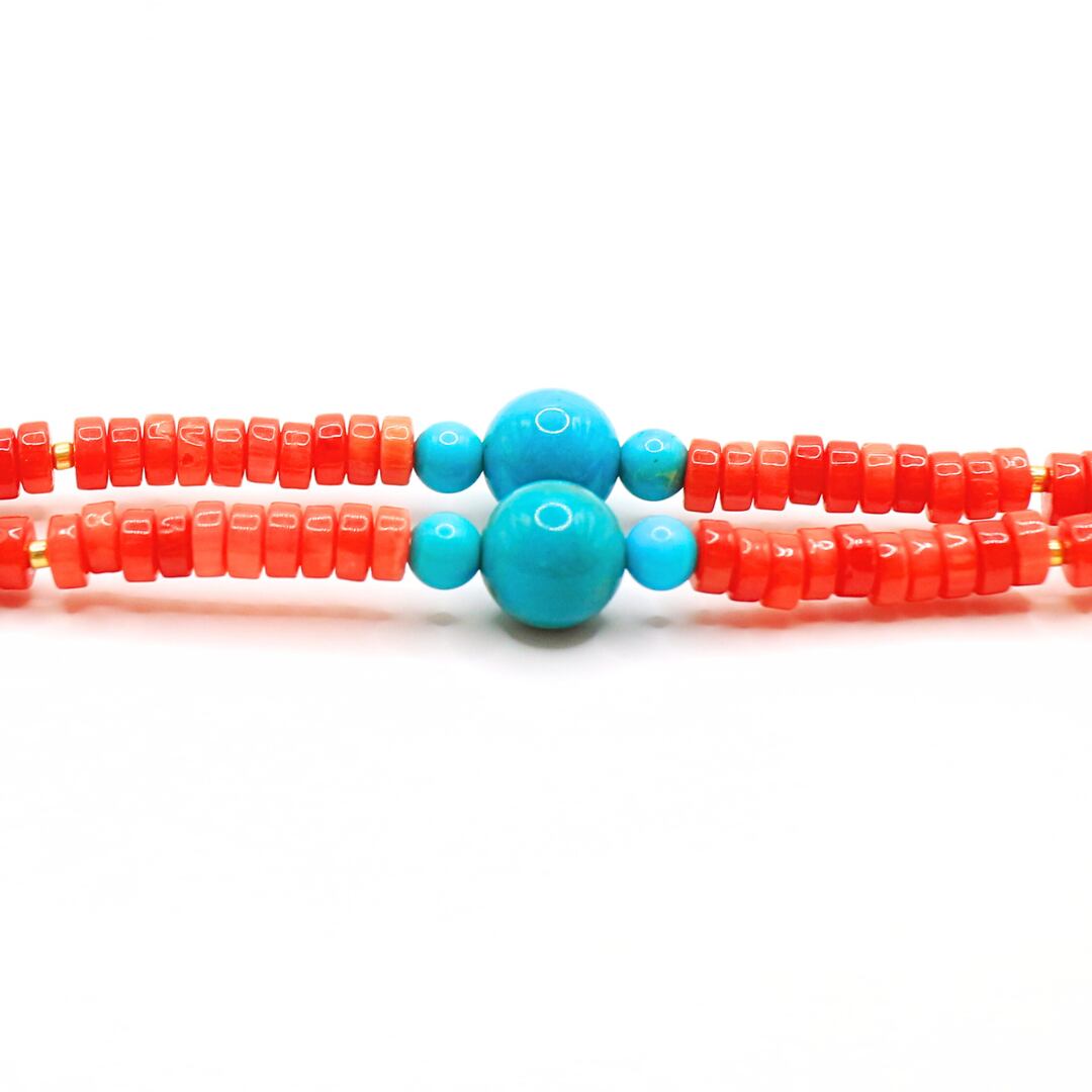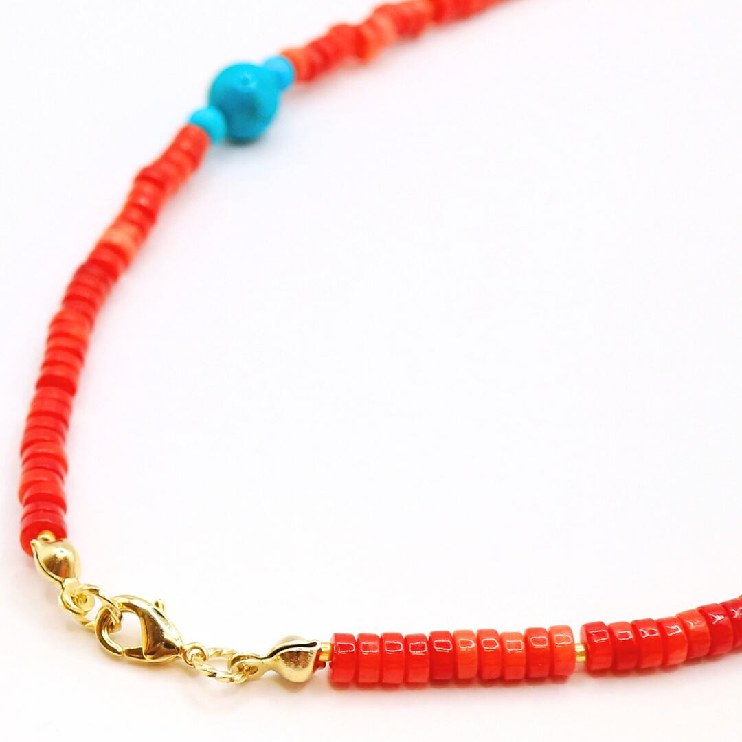 珊瑚 x ターコイズ ビーズ ネックレス limited edition57