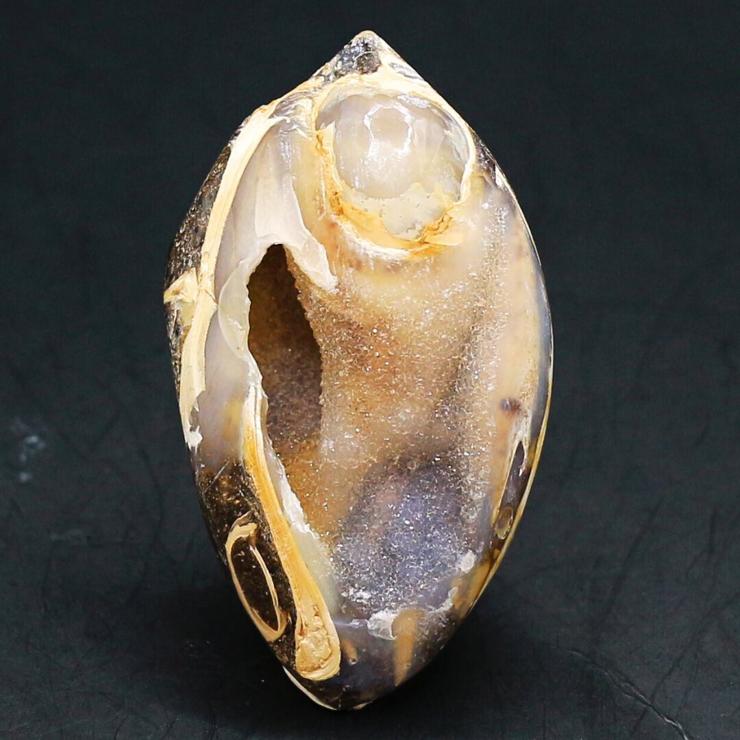 貝の形をほぼ留めたままで、宝石質の石英がキラキラと輝く姿から愛好家やコレクターも多いです。