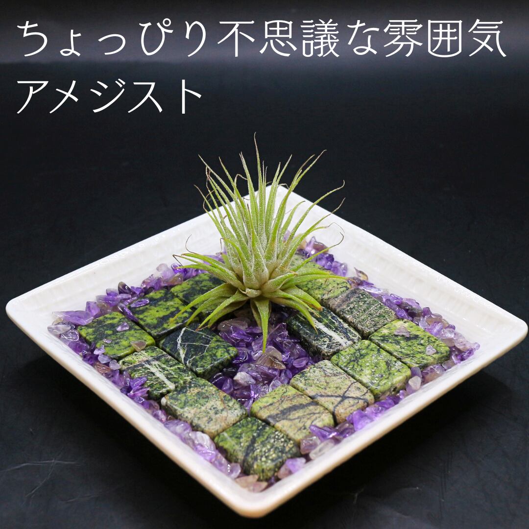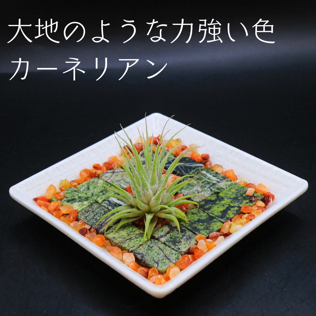 タイル型のジャスパービーズとエアプランツを組み合わせた自分だけの小さなお庭作製キットです。