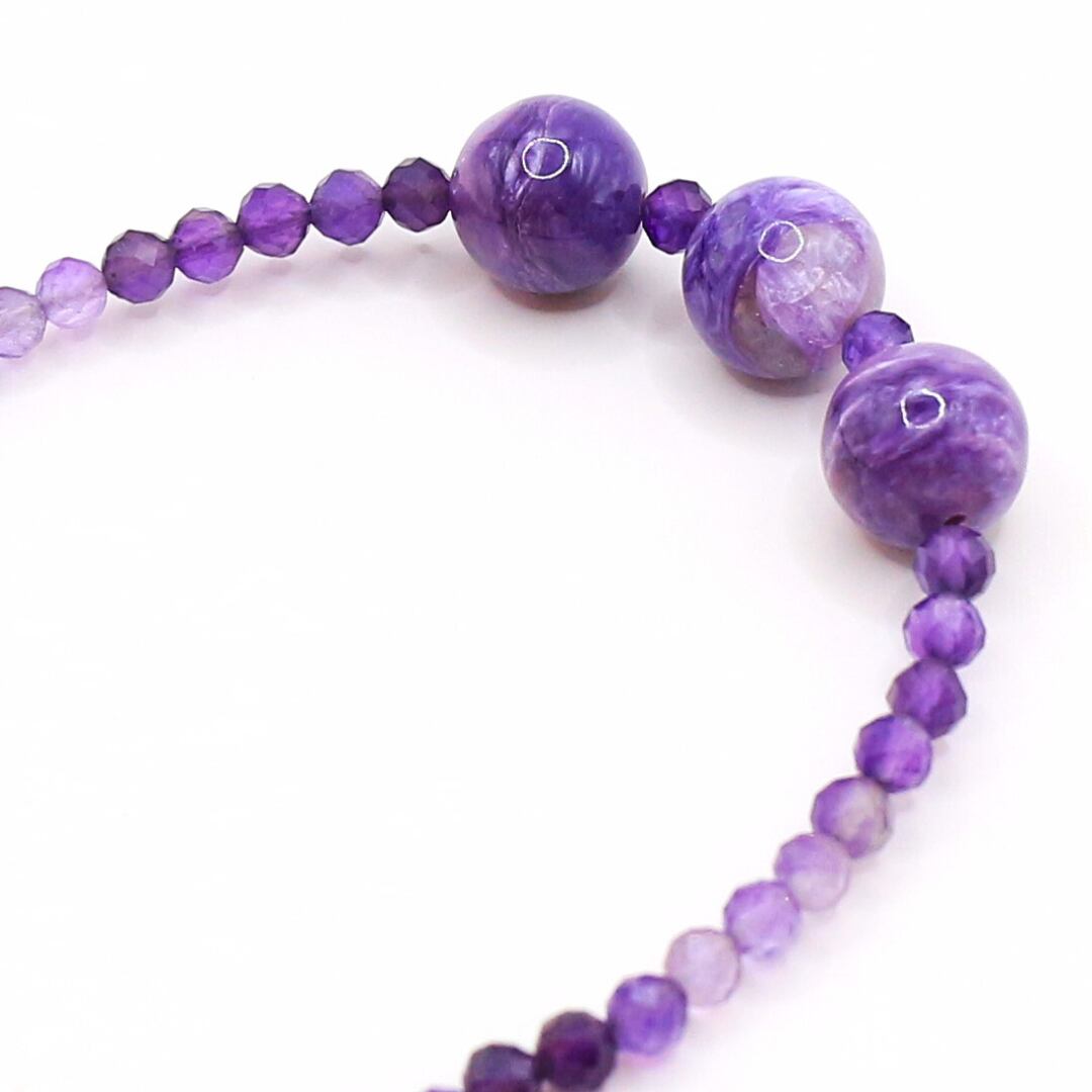 世界三大ヒーリングストーンの一つ『チャロアイト』と濃淡を楽しめる『アメジスト』を組み合わせたネックレス。