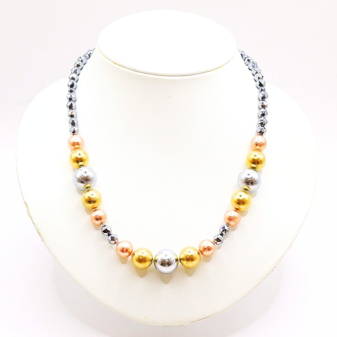 宇宙からやって来た隕石と天然性を組み合わせたビーズネックレス。