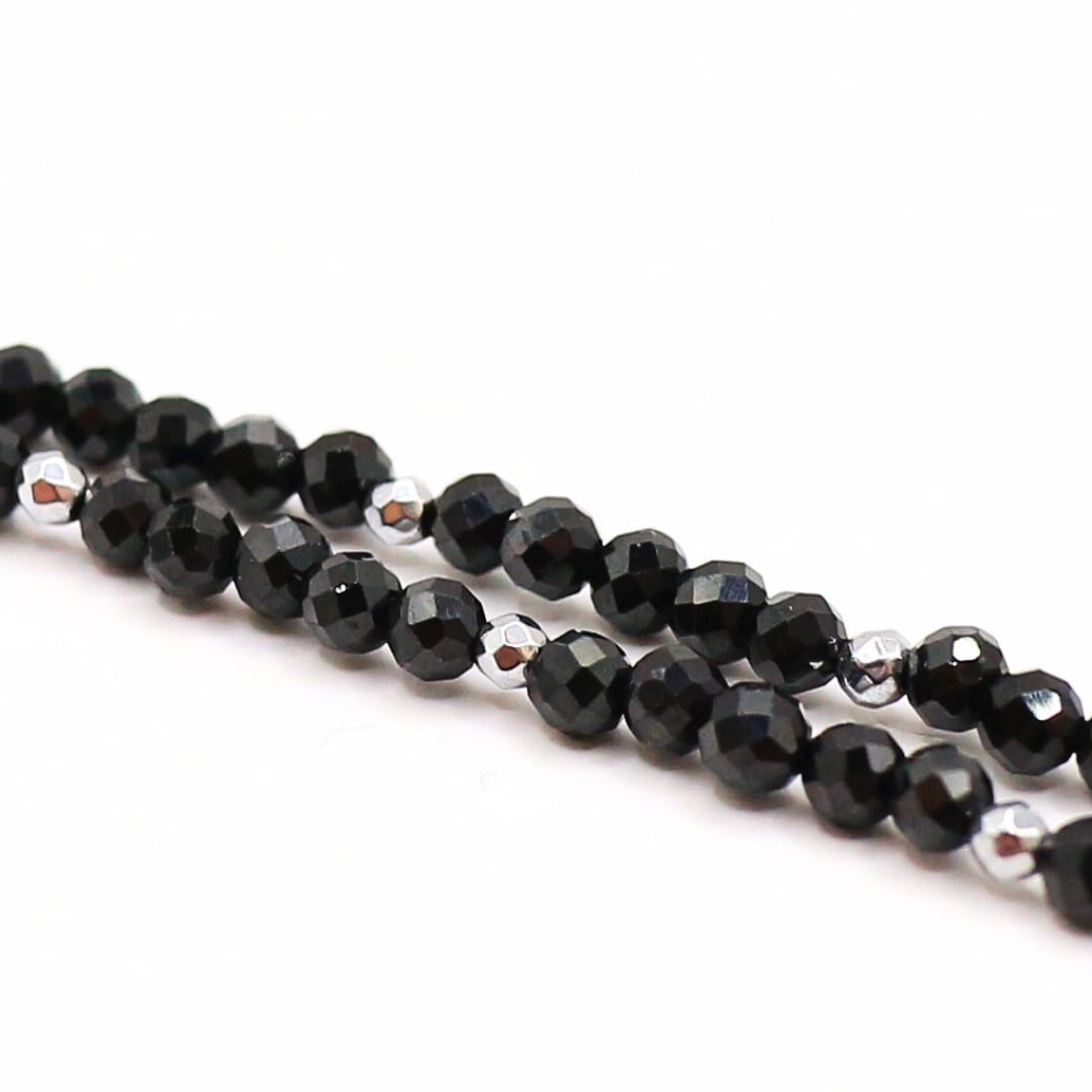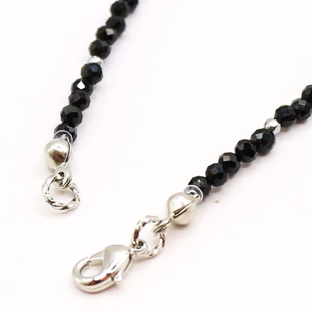 宇宙からやって来た隕石にブラックスピネルとヘマタイトを組み合わせたビーズネックレス。