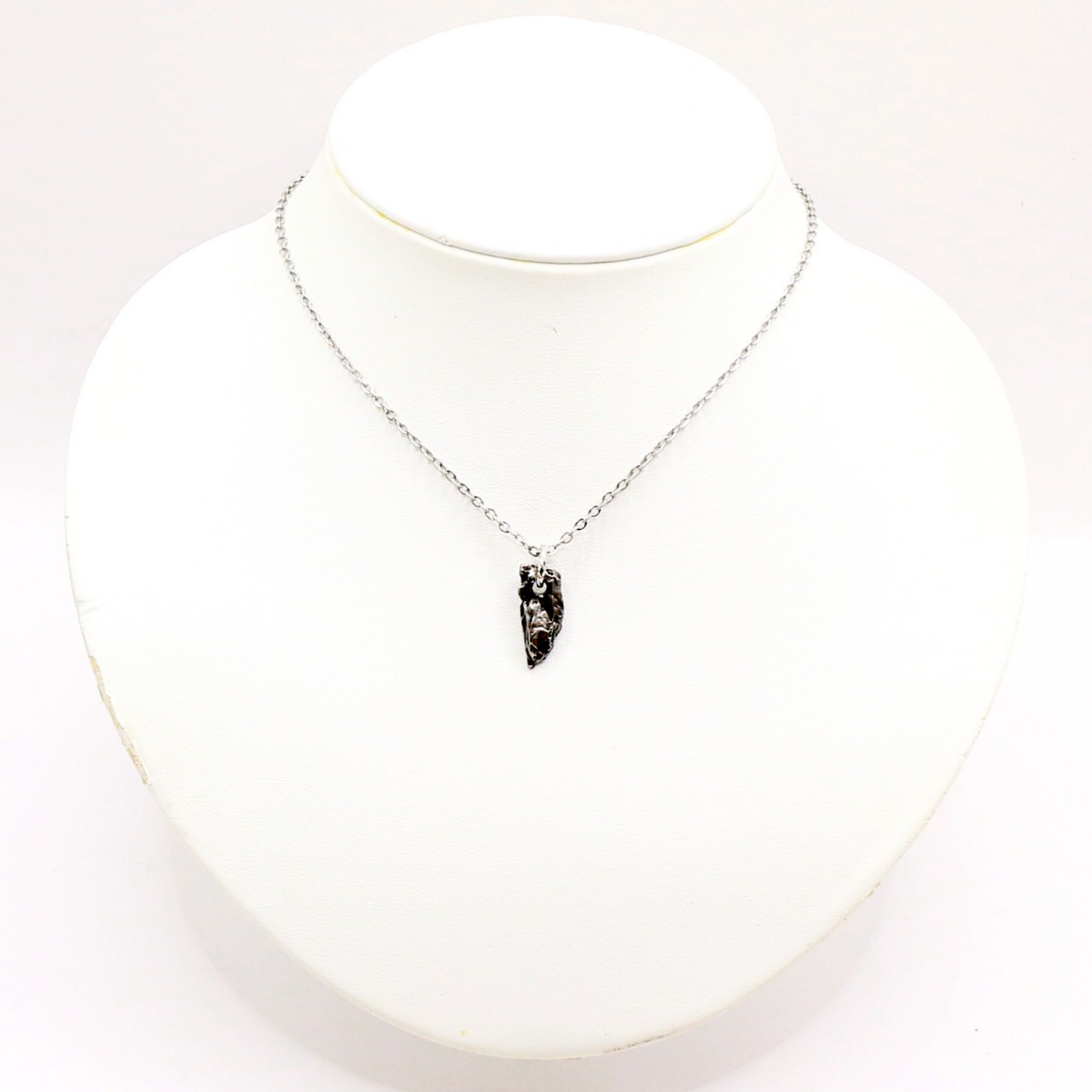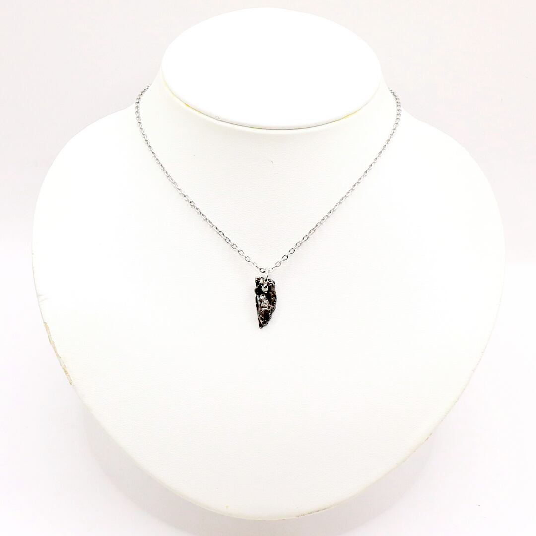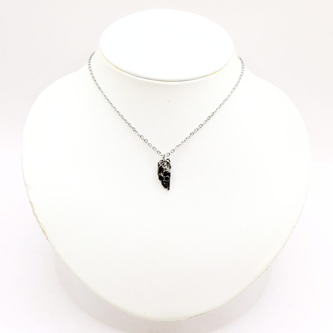 この凹凸は隕石が大気圏突入時に形成されたレグマグリプトと呼ばれる痕跡で、独特な見た目を活かしたペンダントトップに仕立てられることもあります。