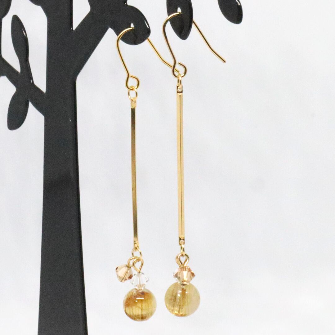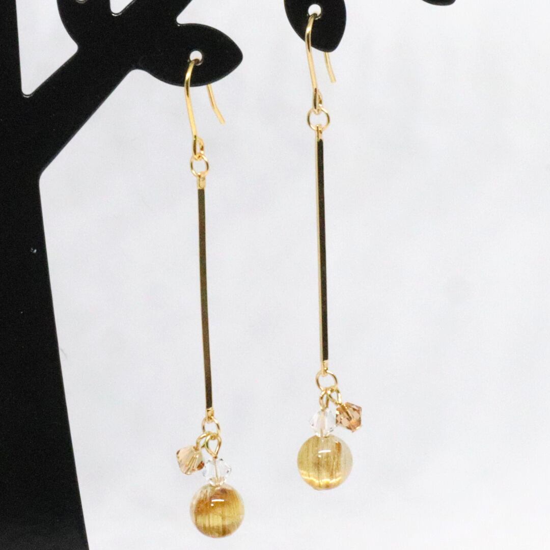 ルチルクォーツ:8mm ピアス全体:6.5cm