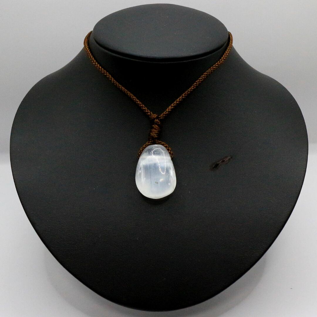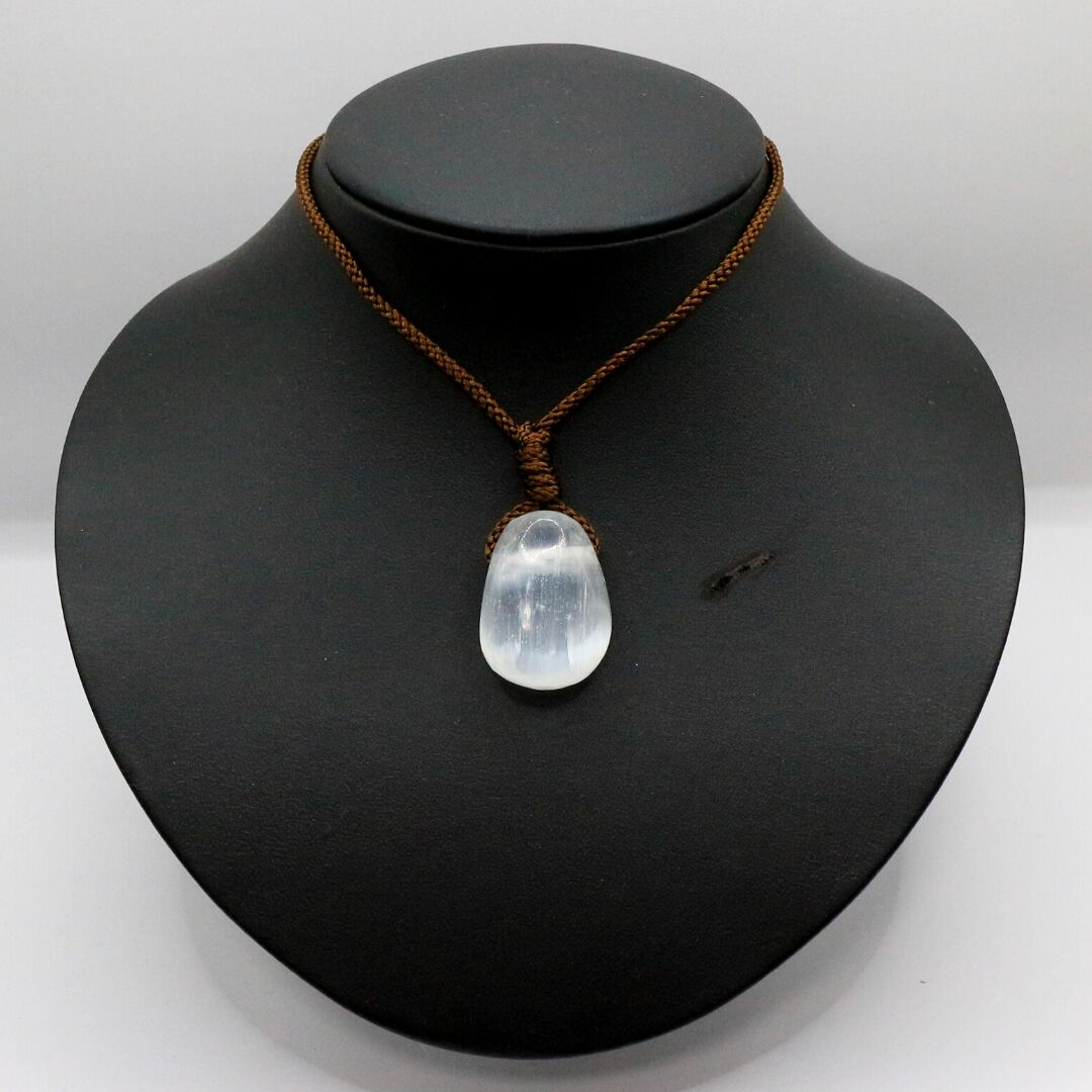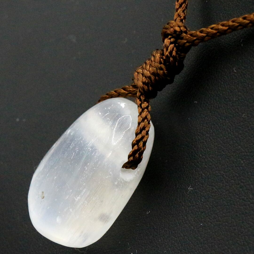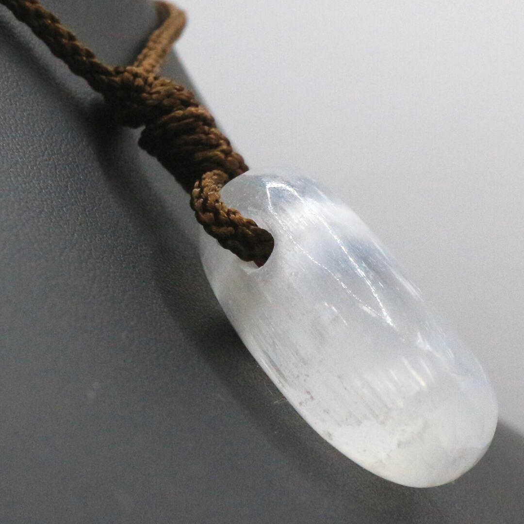 #せんとば~な~堂 #天然石 #天然石アクセサリー #鉱物 #鉱物アクセサリー #穴あきタンブル #セレナイト #ジプサム #石膏 #金属不使用 #コードネックレス