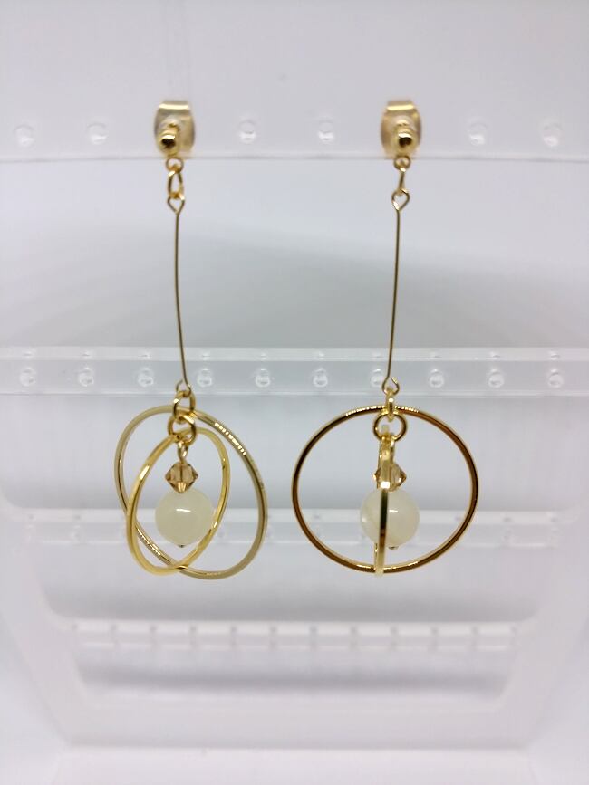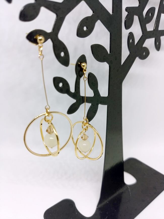 今年仕入れたムーンストーン8㎜玉を使用した天体モチーフのピアスです。