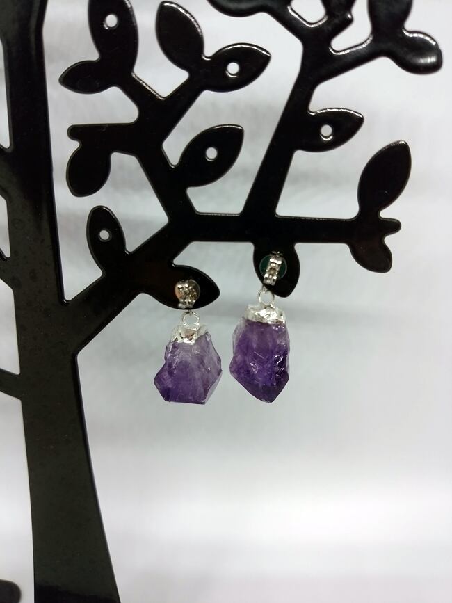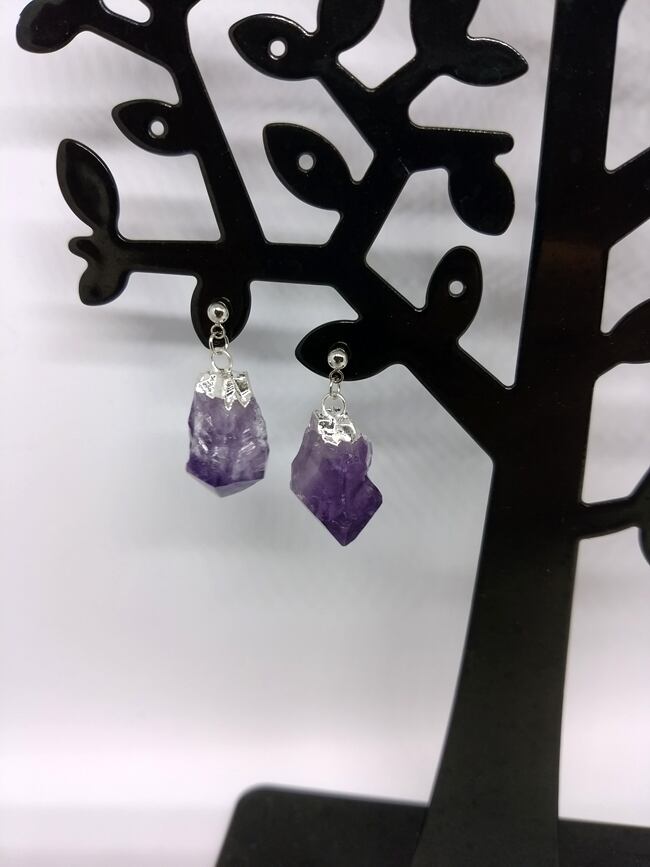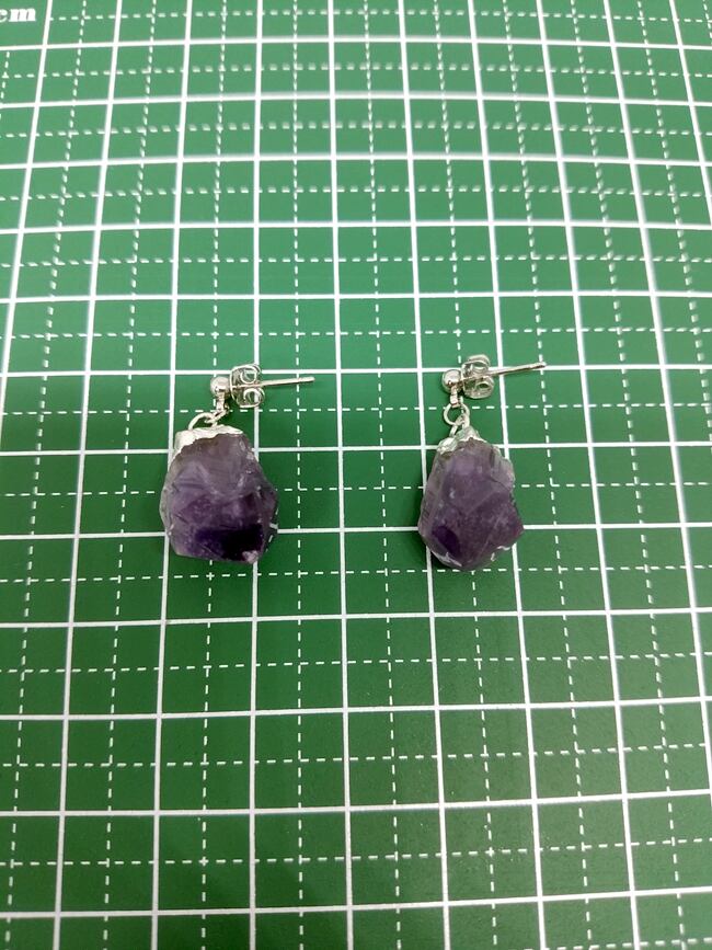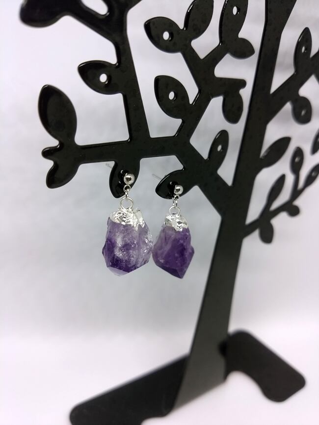 アメジストの原石を使用したシンプルなピアスです。