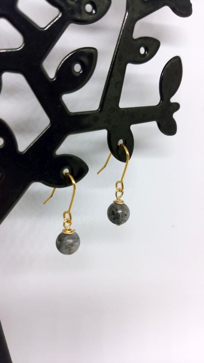 ラブラドライト;6.5mm ピアス全体;2.3cm