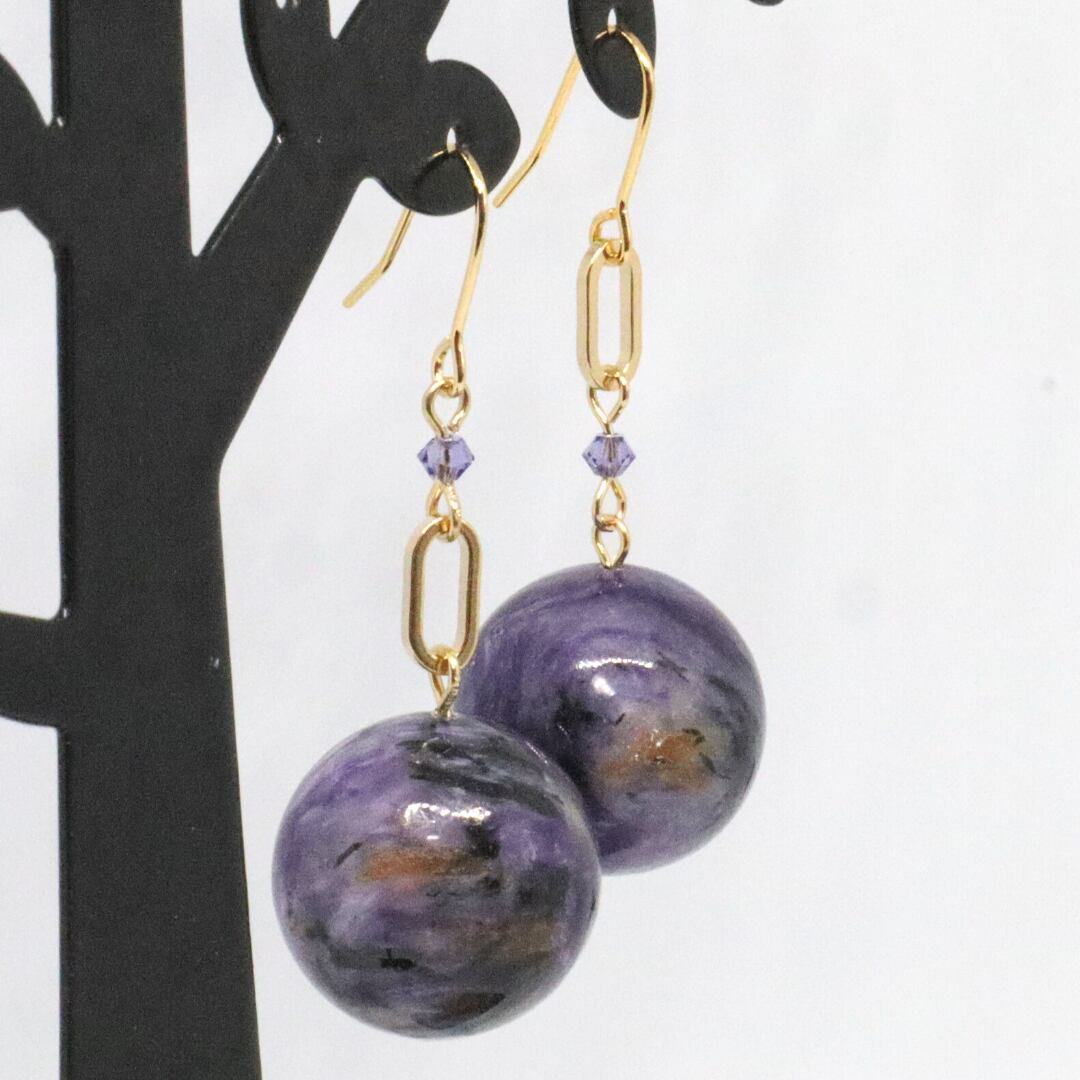 色彩心理士(カラーセラピスト)meccoさんデザインの天然石(チャロアイト)ピアスです。