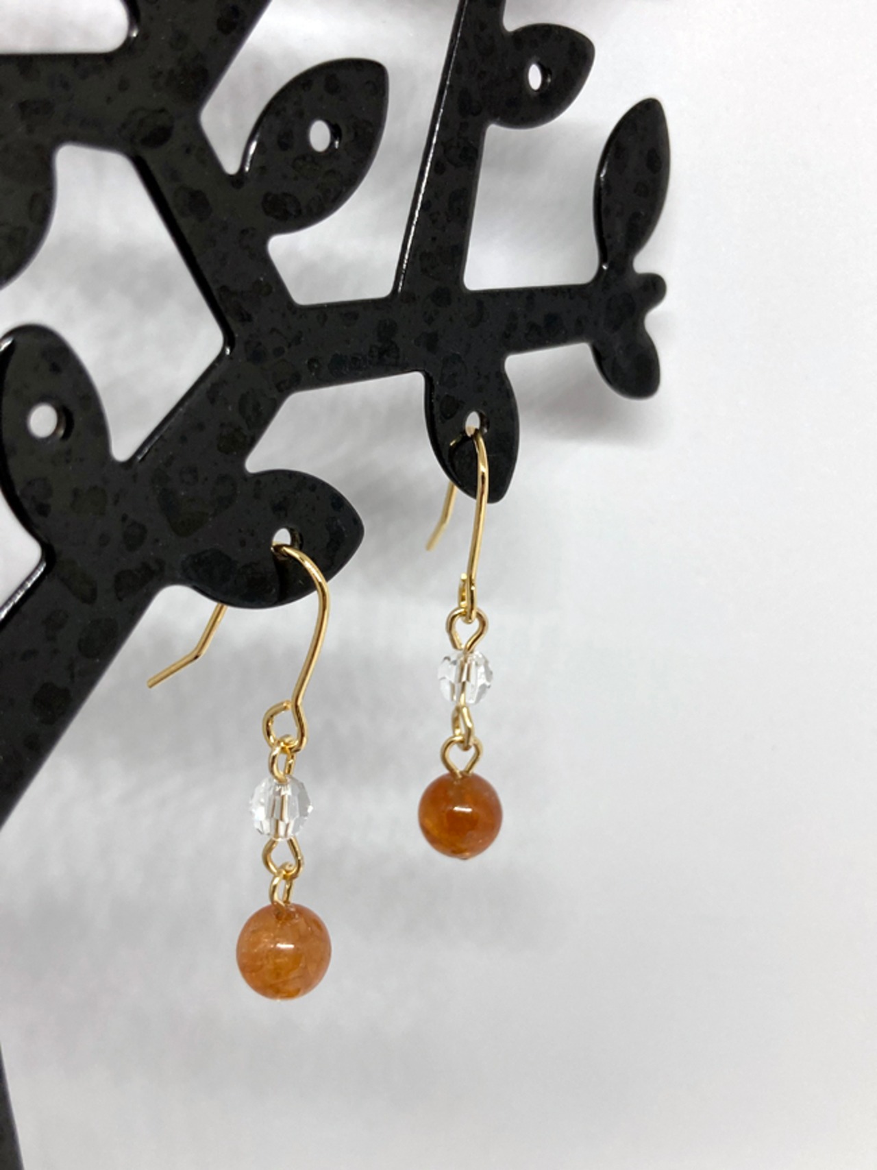 今回は1月の誕生石ガーネットの一種 オレンジガーネットを使用したシンプルピアスです。