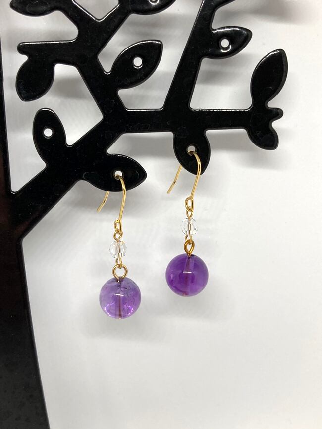 今回は『愛の守護石』と呼ばれる2月の誕生石アメジストを使用したシンプルピアスです。