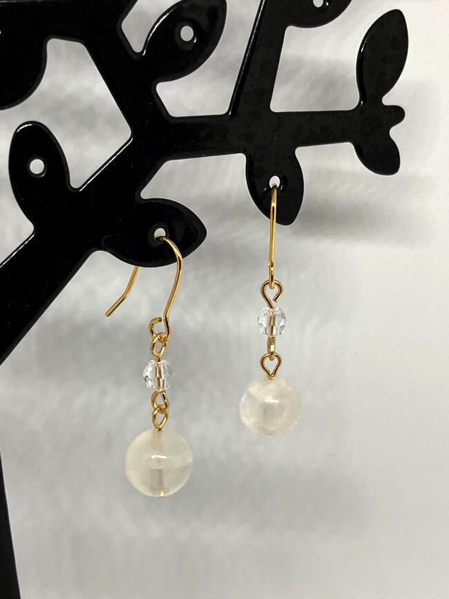 今回は『月の力を宿す聖なる石』として重宝された6月の誕生石ムーンストーンを使用したシンプルピアスです。