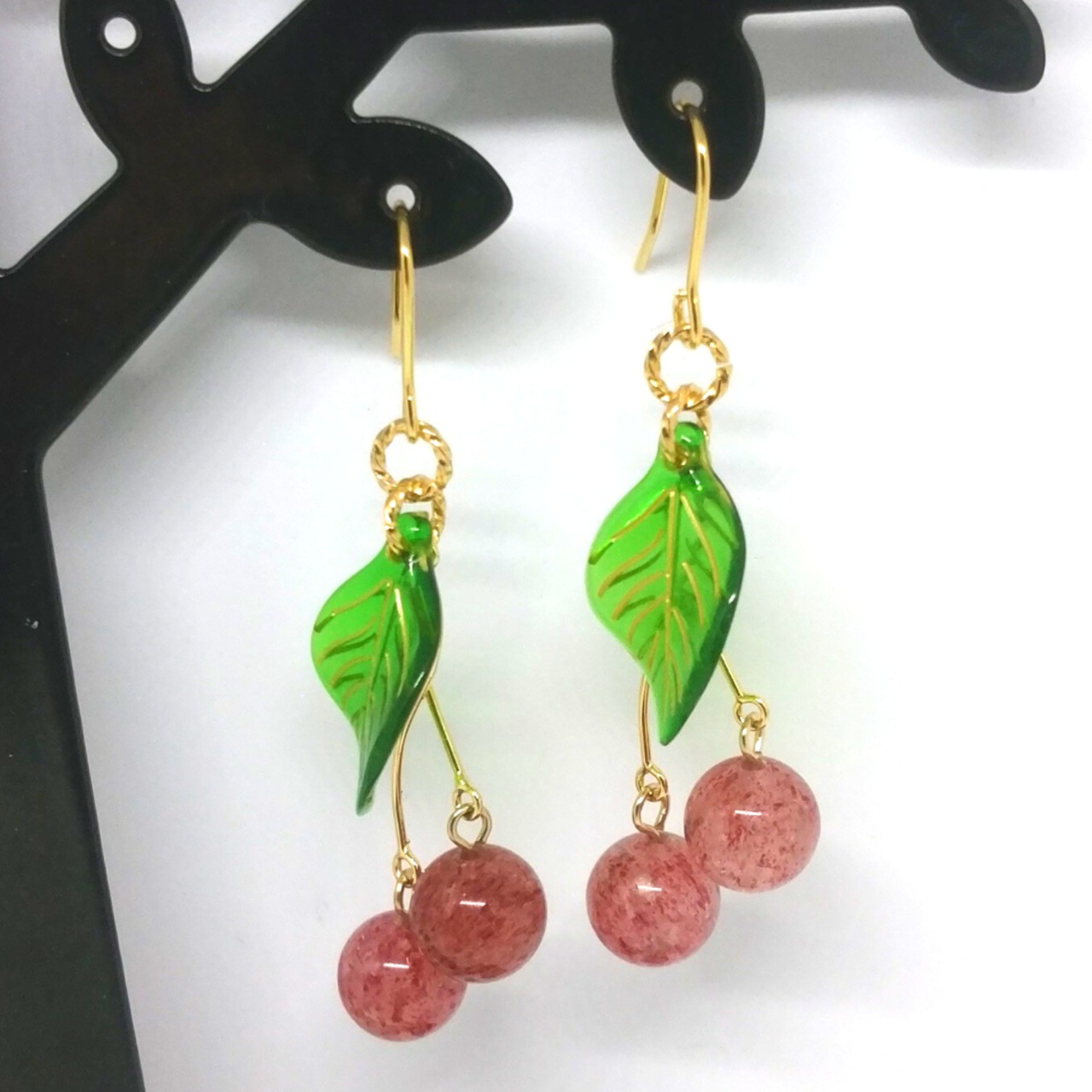 色彩心理士(カラーセラピスト)meccoさんデザインの天然石(アフリカンストロベリークォーツ)ピアスです。