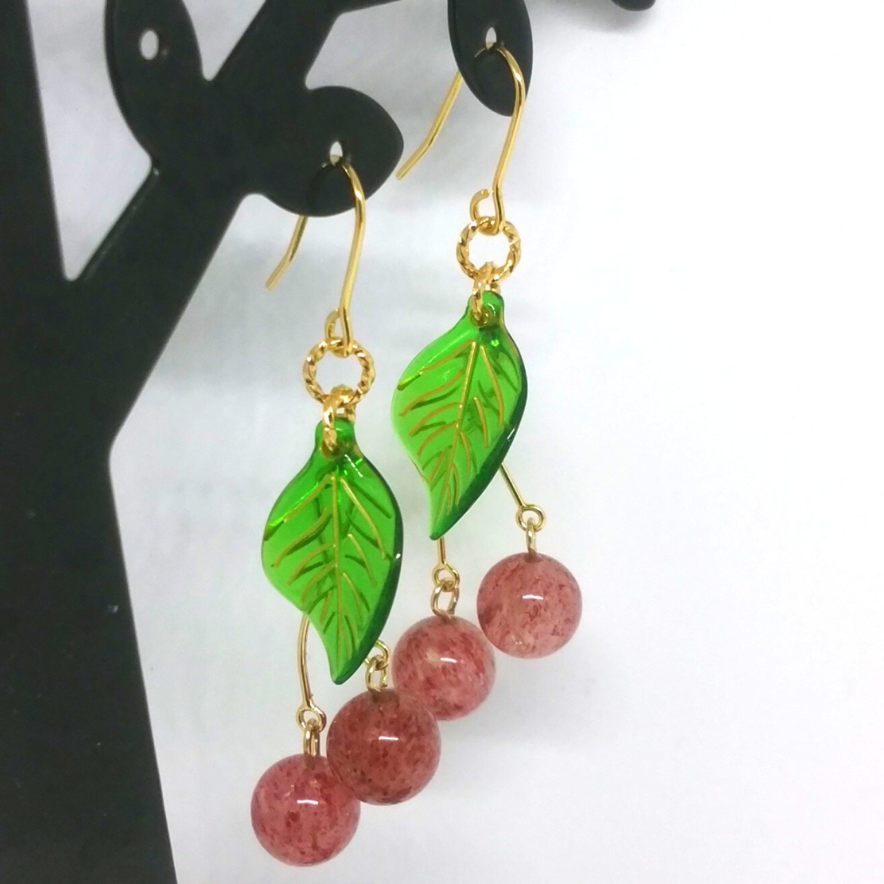 アフリカンストロベリークォーツ:8mm ピアス全体:4.7cm