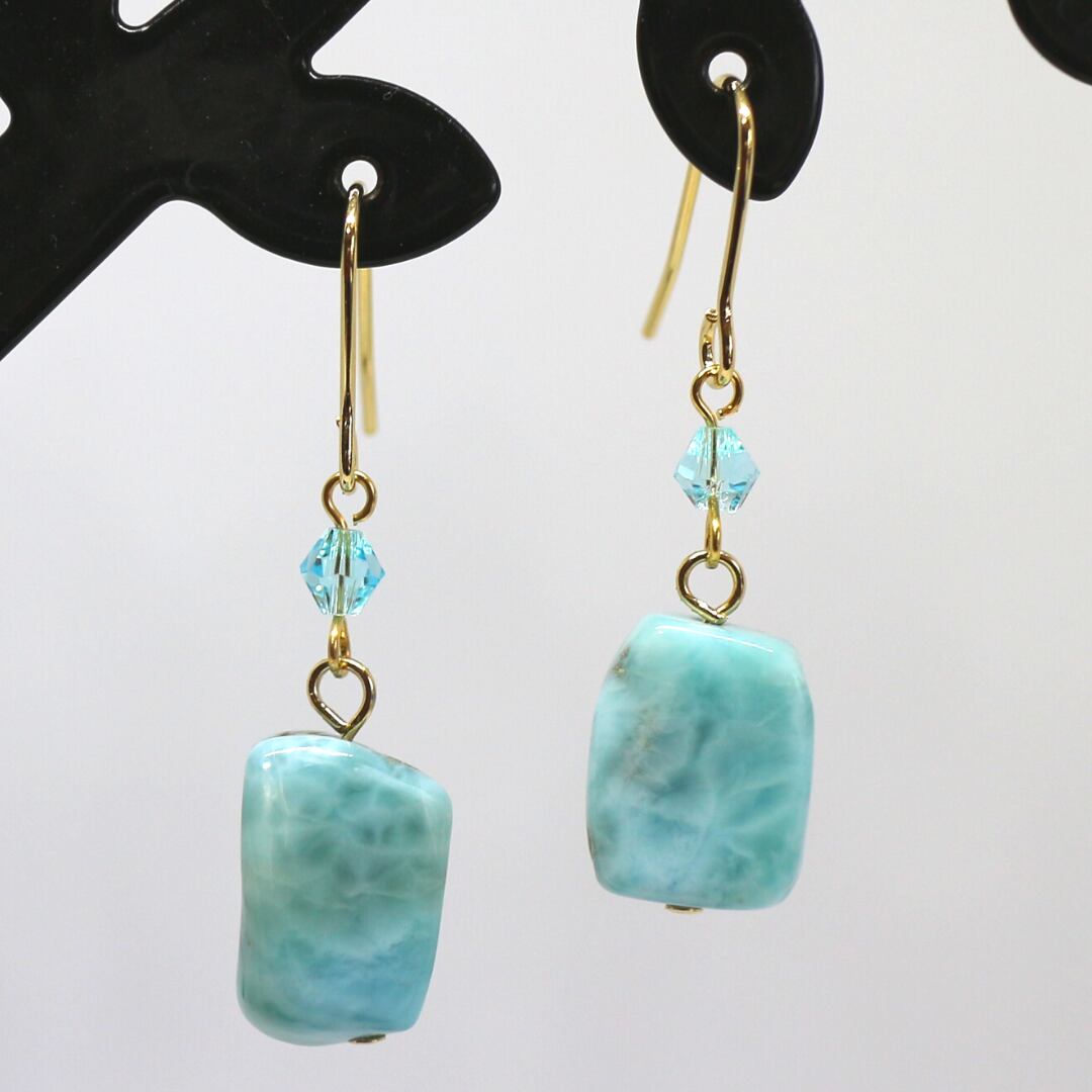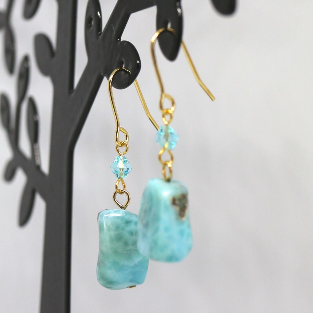 色彩心理士(カラーセラピスト)meccoさんデザインの天然石(ラリマー)ピアスです。