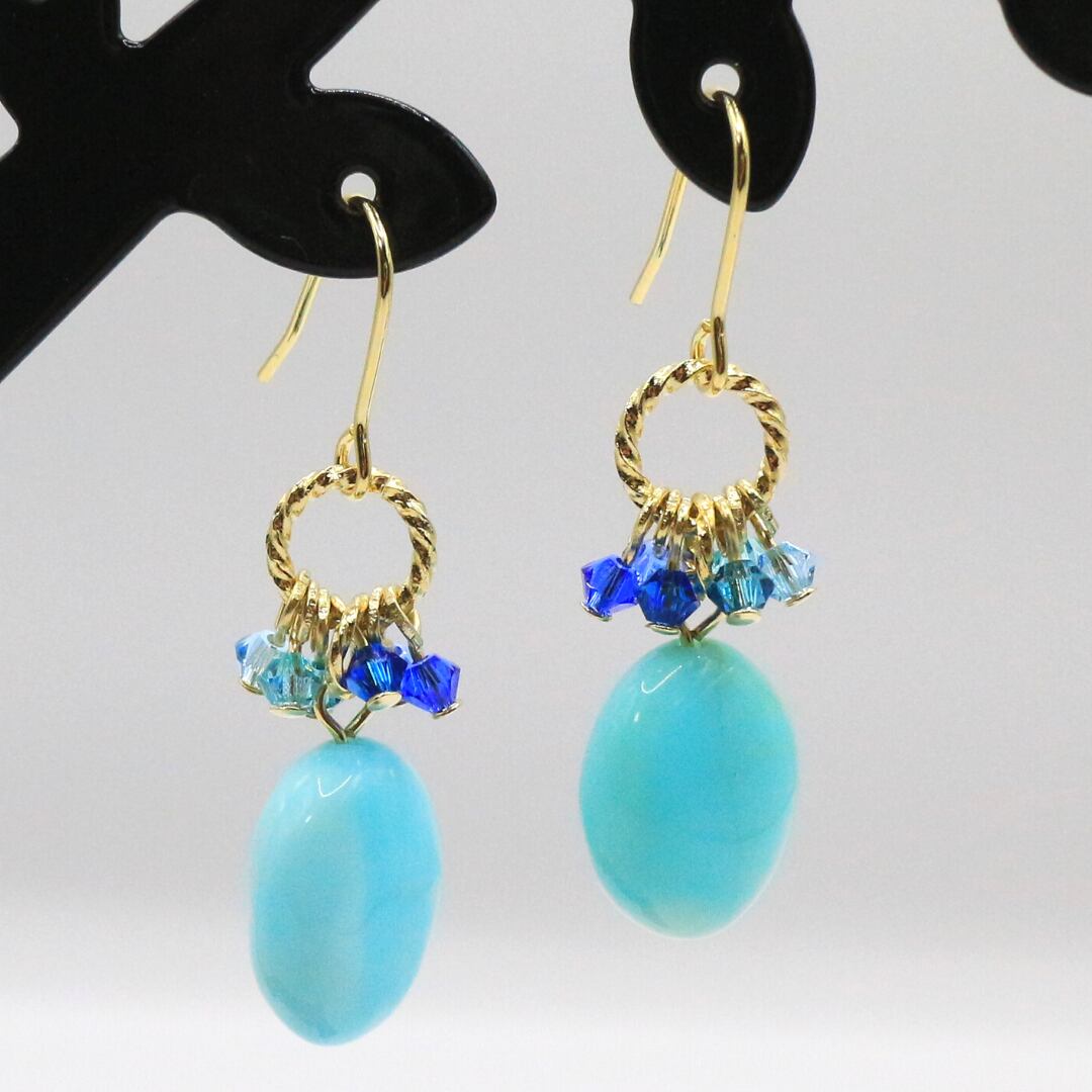 色彩心理士(カラーセラピスト)meccoさんデザインの天然石(ブルーオパール)ピアスです。
