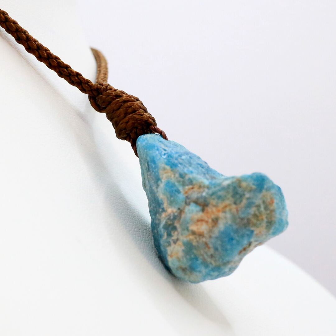 採掘されるときに様々な形状で産出するため、アクアマリンやトルマリンと見間違えることが多く、ギリシャ語で「ごまかす」「騙す」「惑わす」という意味の「apate」が由来になった鉱物。人間や動物の歯や骨の主成分であるハイドロキシアパタイトとほぼ同じもので、歯磨き粉にも含まれている身近な宝石です。