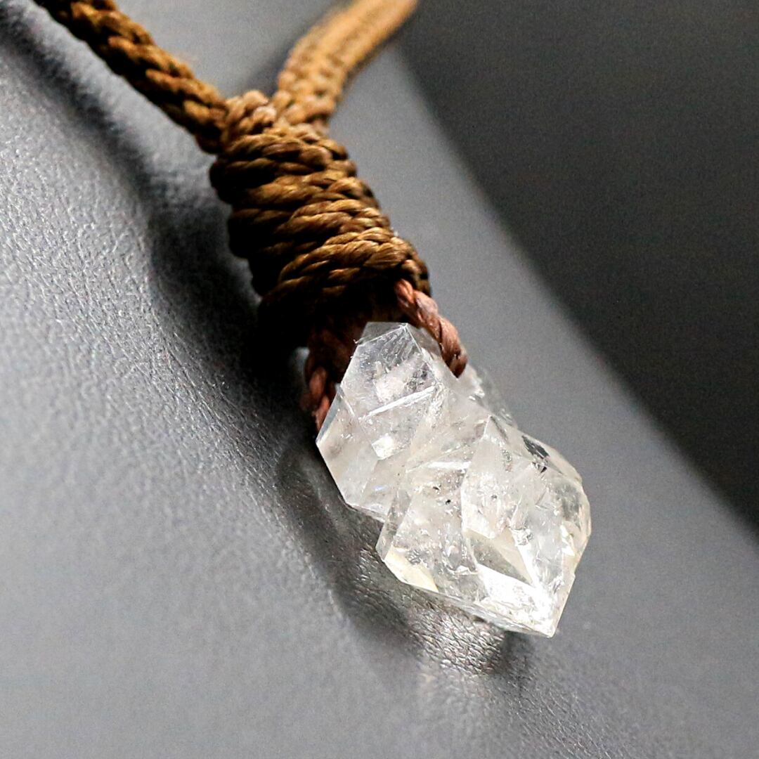 この石はアメリカのニューヨーク州 ハーキマーでしか採れない両端の尖った珍しい水晶です。別名「ドリームクリスタル」と呼ばれ、この石を持って眠ると自身の抱えている問題を解決する手がかりを予知夢を見ることができると言われています。