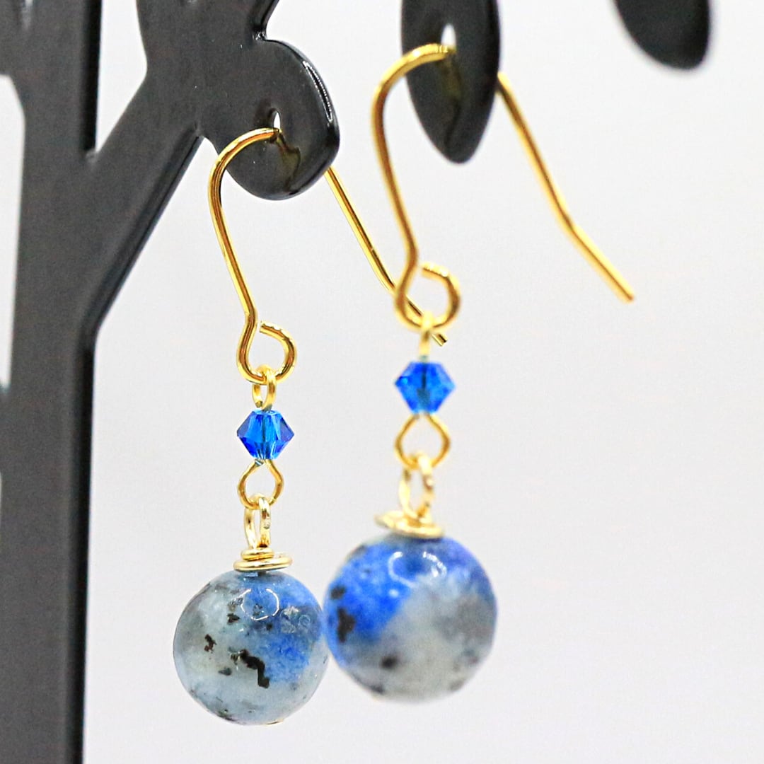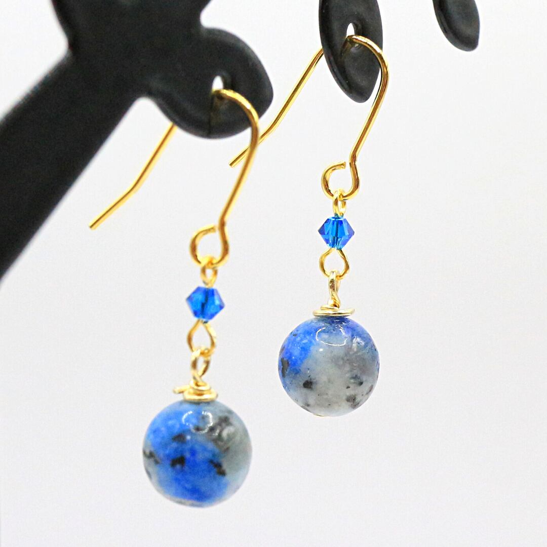 色彩心理士(カラーセラピスト)meccoさんデザインの天然石(K2アズライト)ピアスです。