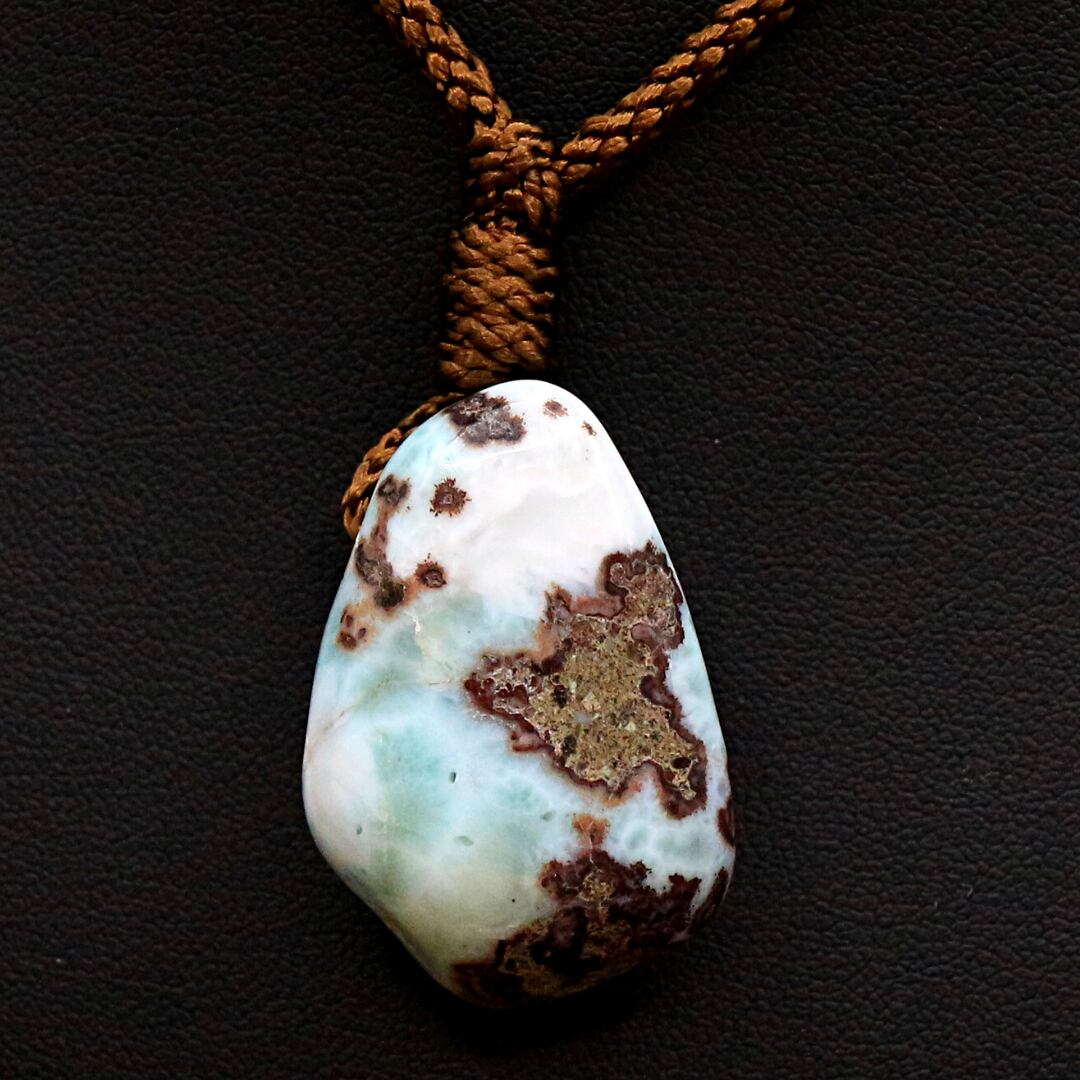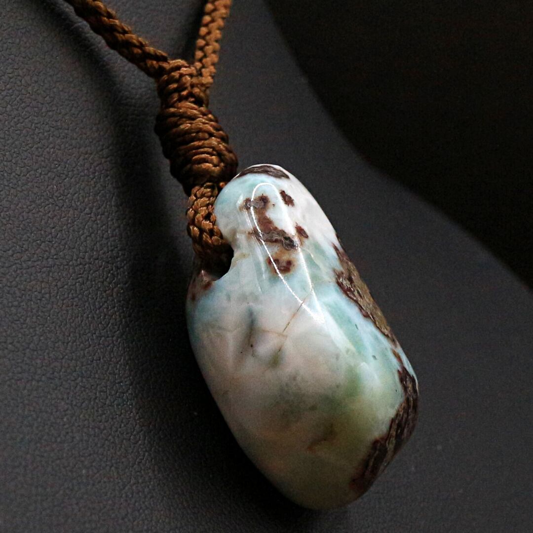 ドミニカ共和国でしか採れない貴重な天然石で 別名:ドルフィンストーンと呼ばれ、地中海を切り取ったような水色が美しく、愛と平和の象徴として有名なヒーリングストーンとして人気があります。