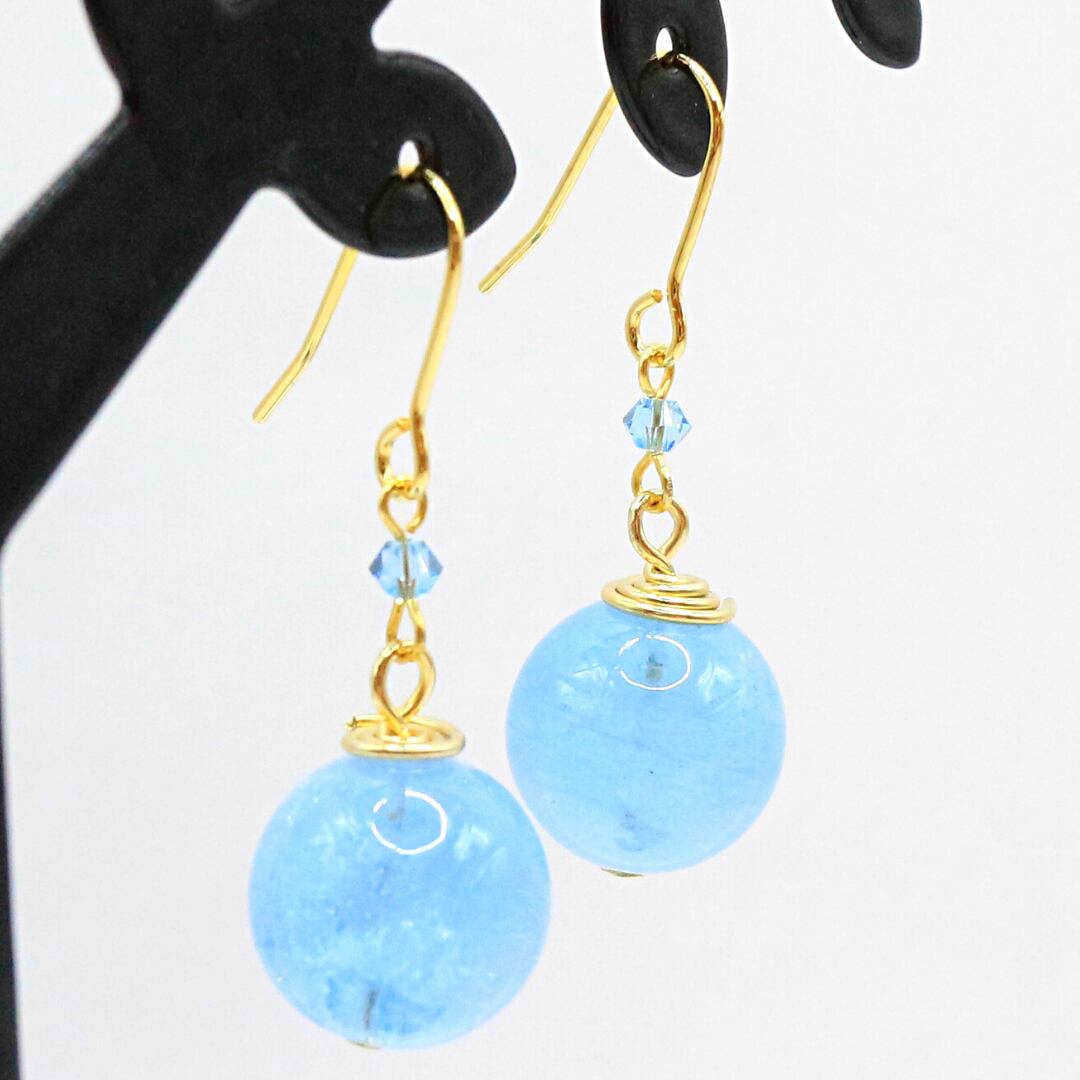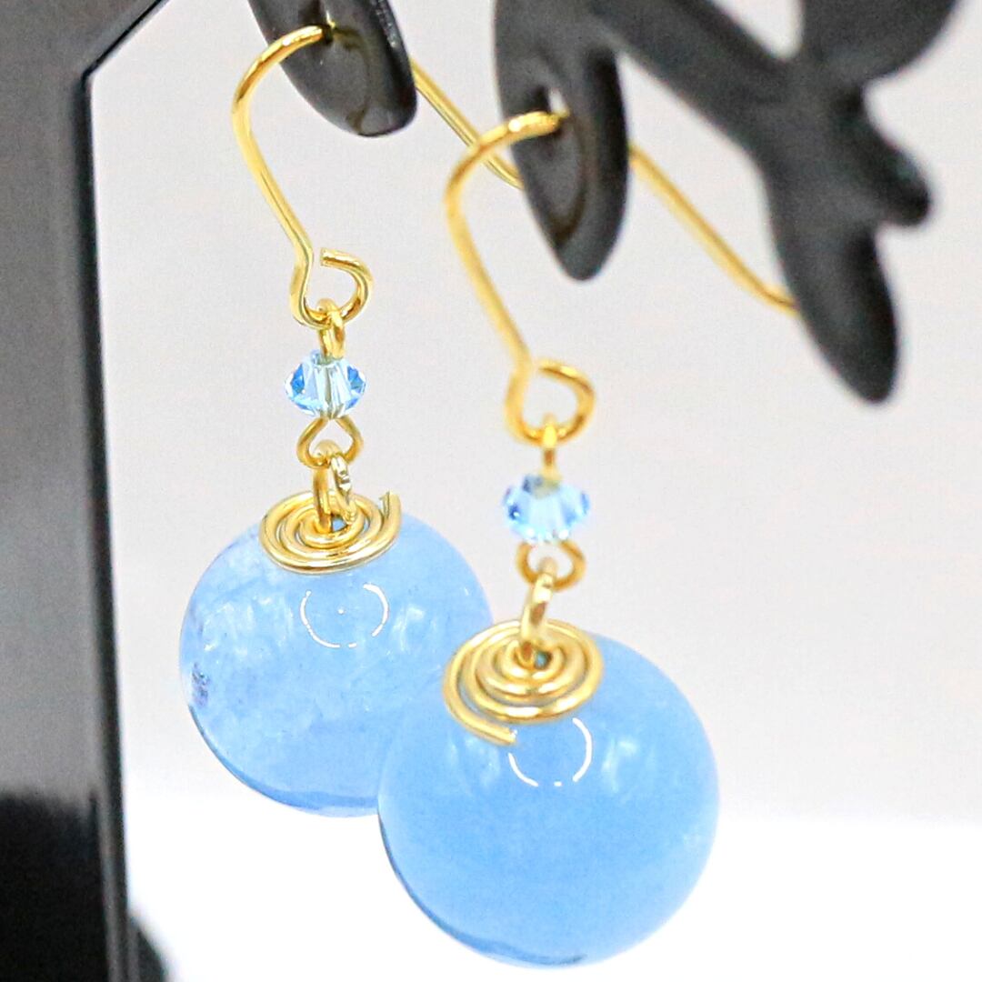 色彩心理士(カラーセラピスト)meccoさんデザインの天然石(アクアマリン)ピアスです。