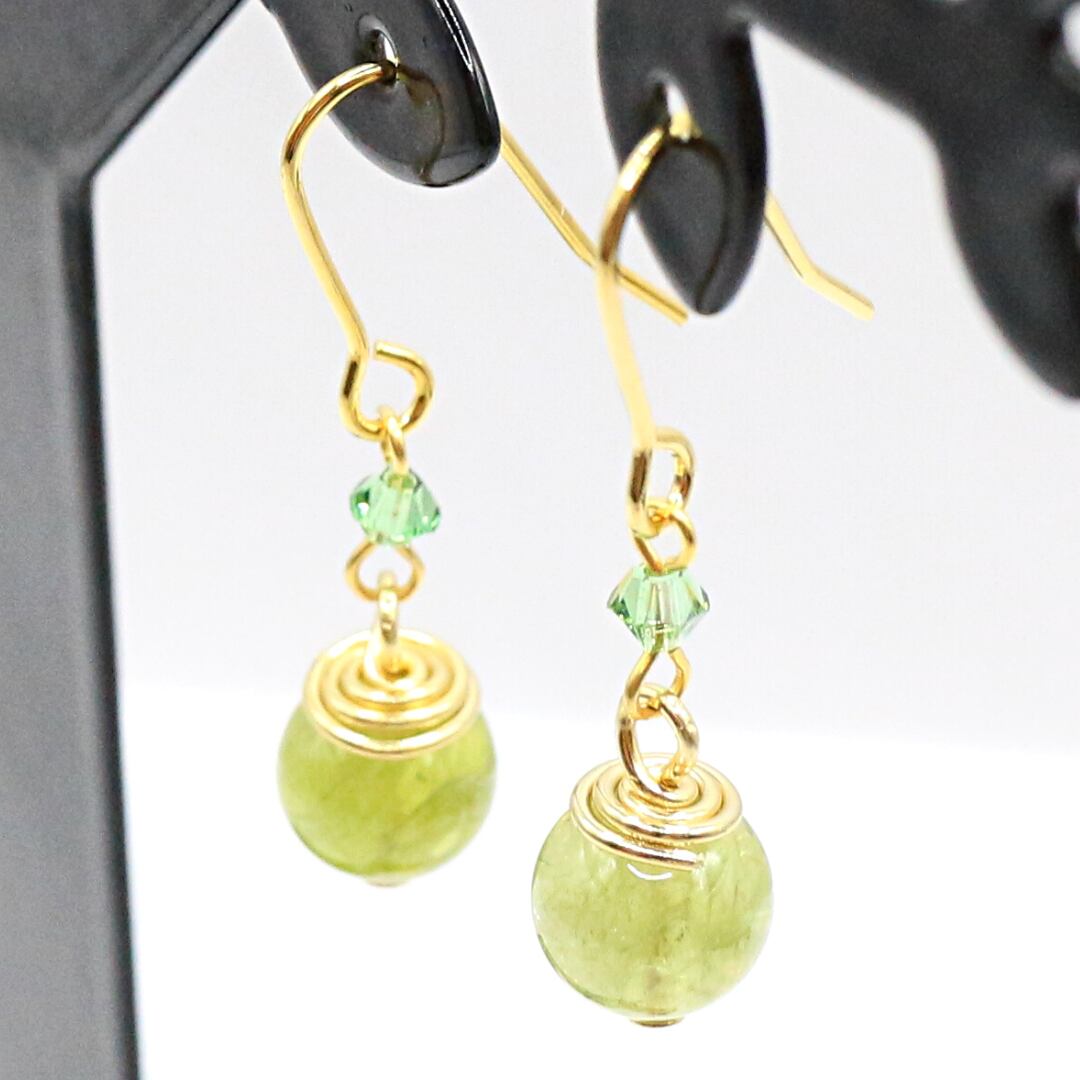 色彩心理士(カラーセラピスト)meccoさんデザインの天然石(グリーンガーネット)ピアスです。