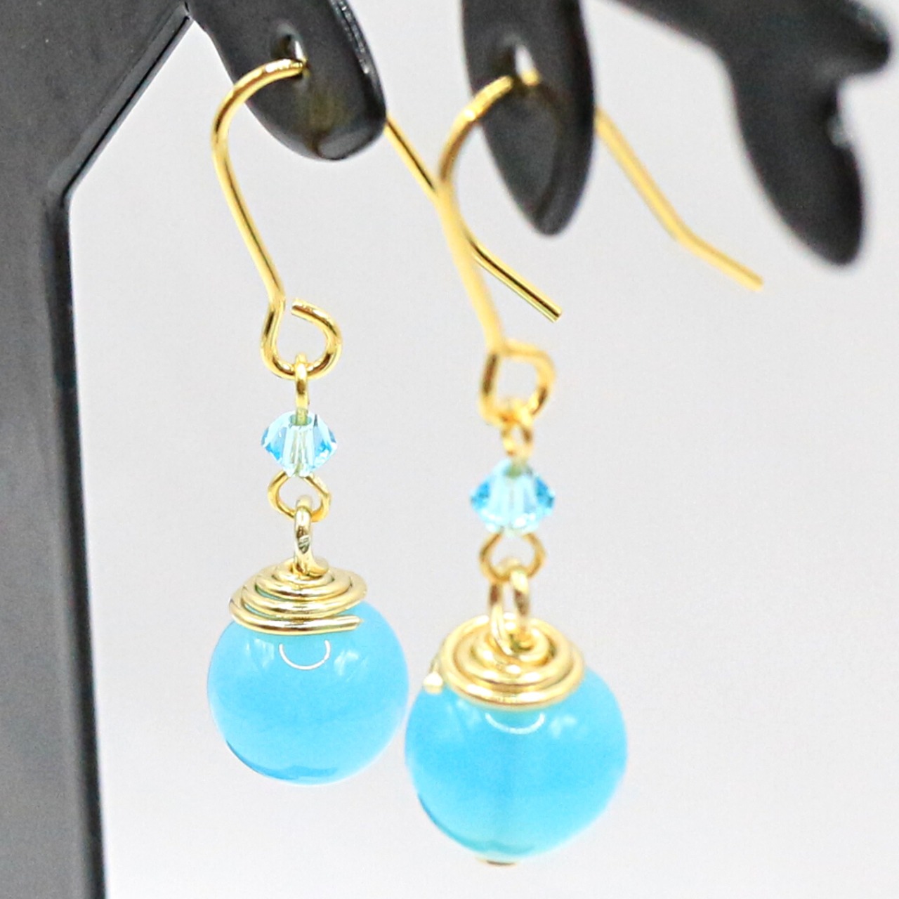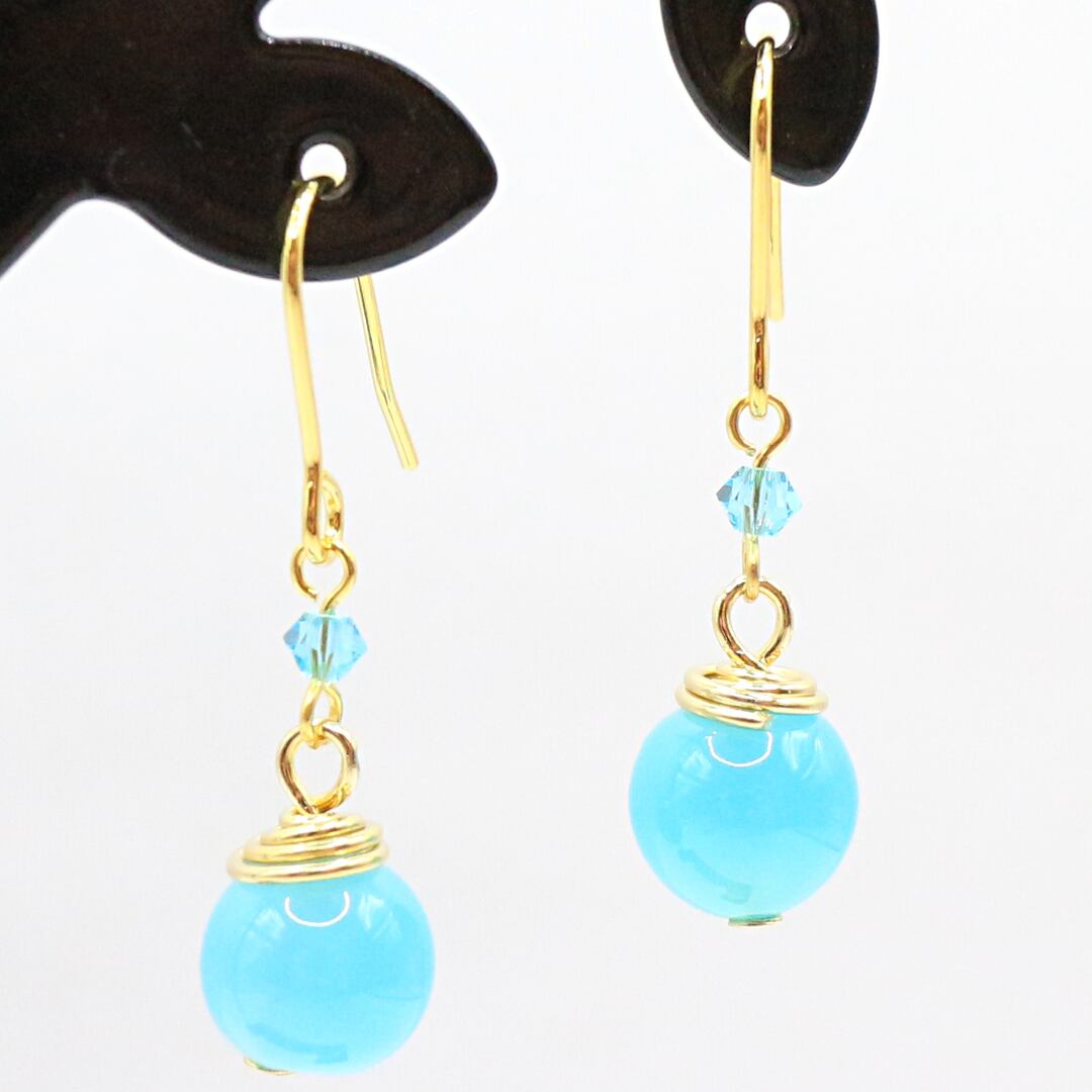 シーブルーカルセドニー:8㎜ ピアス全体:3.2cm