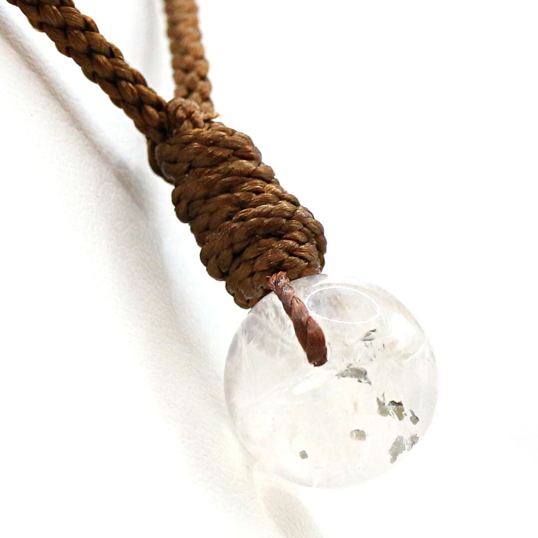 環境や人間関係から来る悪影響を遠ざけるパイライトが浄化に長けた水晶の中に入っている珍しい鉱物。