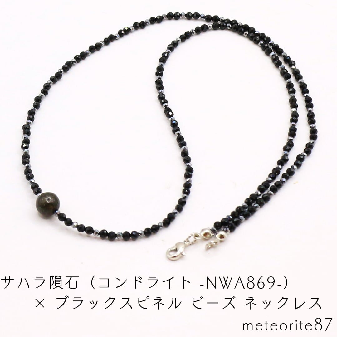 ■商品 サハラ隕石(コンドライト -NWA869-) × ブラックスピネル ビーズ ネックレス meteorite87